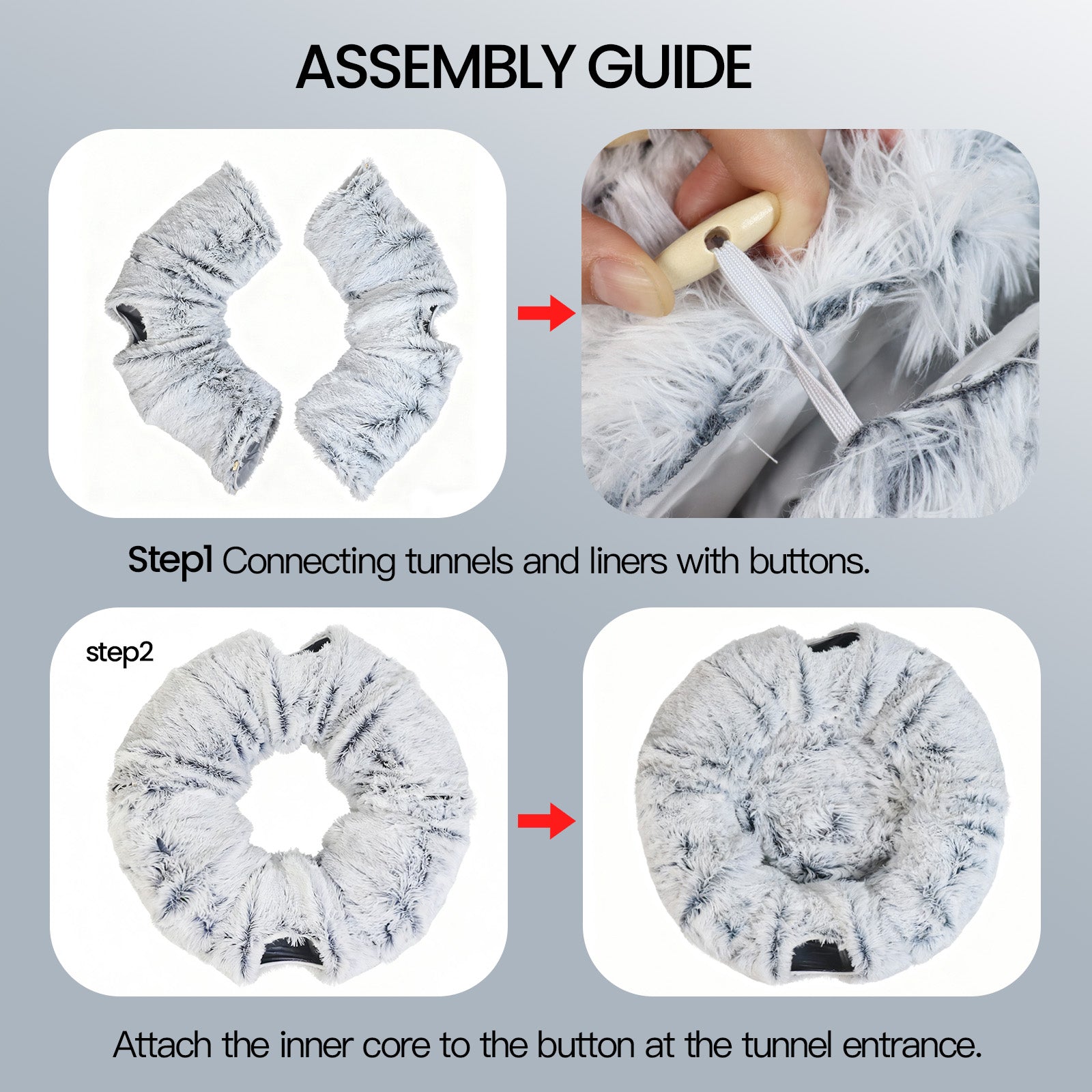 This pet tunnel bed features convenient, easy-to-use buttons that allow you to adjust and reshape the tunnel to suit your pet’s preferences. Whether you want to create a more enclosed hideaway or an open play space, you can effortlessly customize it into a unique environment tailored just for your furry companion. It adds an interactive element that keeps your pet curious and engaged. -