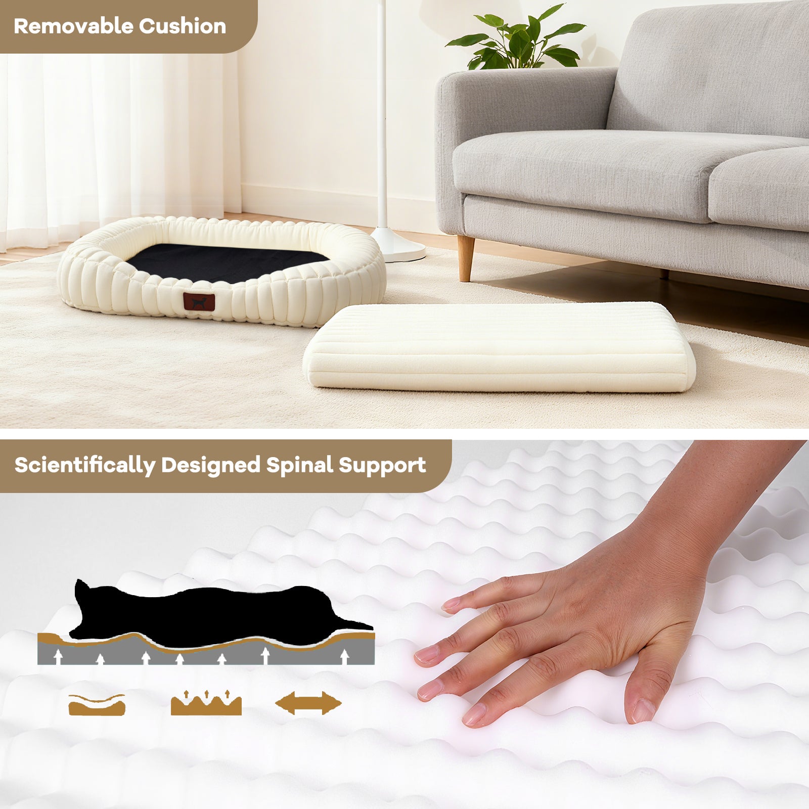 The interior is filled with thick, high-quality foam that provides excellent support and cushioning. It helps evenly distribute your pet’s weight, reducing pressure points and enhancing overall comfort. Whether for naps or overnight sleep, this supportive base ensures your pet can rest peacefully.